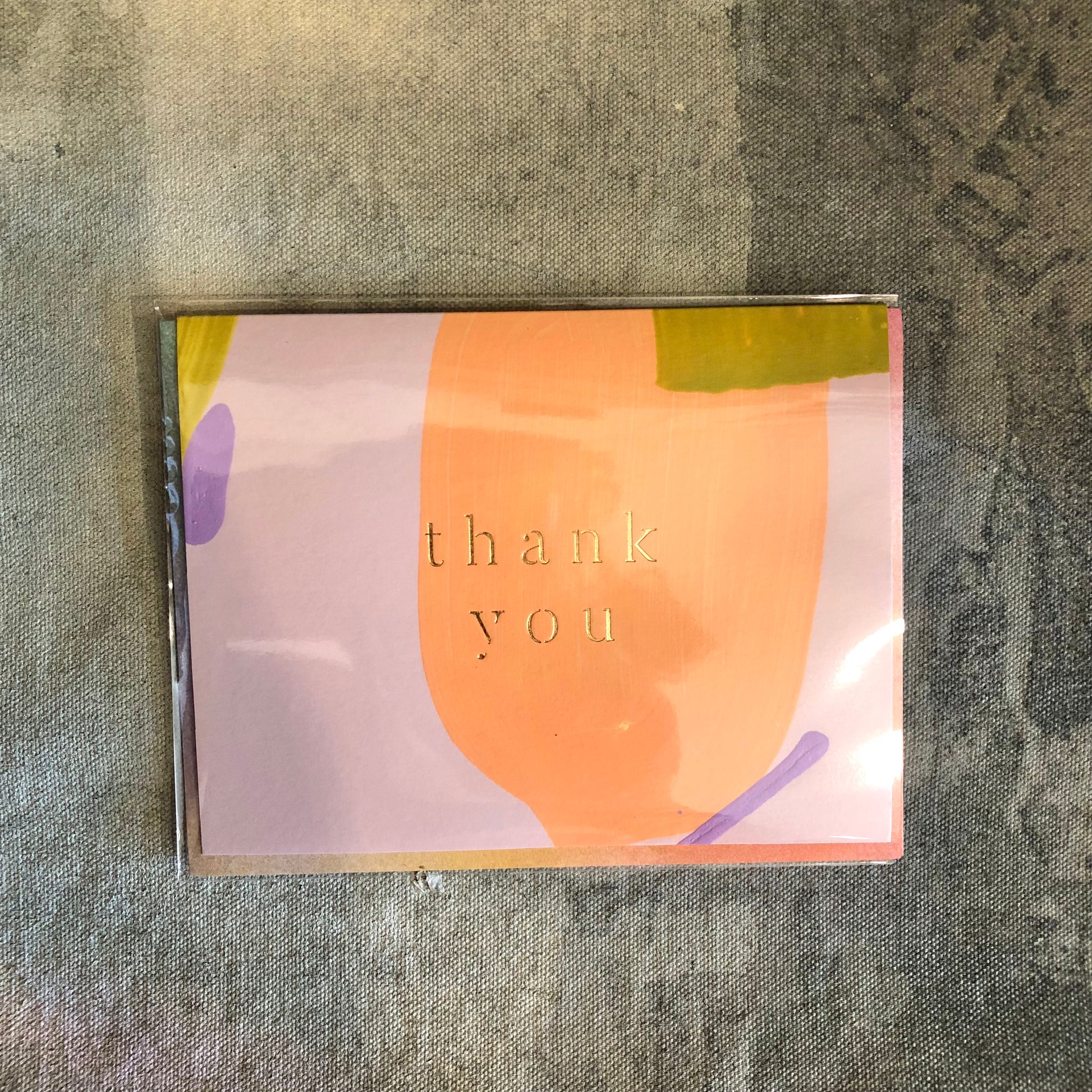 Hand-painted folded card with gold foil. Each card has a unique abstract design. Paired with a patterned envelope.